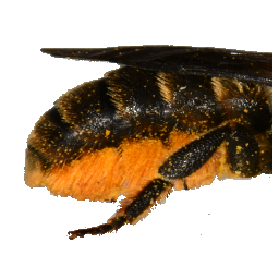 Auch hierfür ist es nicht notwendig, dass Sie die genaue Färbung der Hinterbeine betrachten. Es ist lediglich wichtig zu erfassen, ob sich die Farbe der Hinterbeine von der des Hinterleibes unterscheidet oder nicht oder ob die Hinterbeine einfach schwarz sind. Bei behaarten Tieren ist der Farbeindruck gemeint, der durch die Behaarung entsteht. Wichtig: Bei Weibchen beinsammelnder Arten kann durch den transportierten Pollen eine Bewertung dieses Merkmals nicht möglich sein.